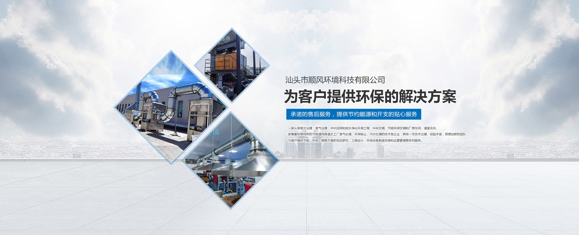 汕頭市順風(fēng)環(huán)境科技有限公司,是一家專注從事廢水治理,廢氣治理,中水回用和給水凈化環(huán)境工程,中央空調(diào)、節(jié)能環(huán)??照{(diào)和廠房車間、溫室花卉、家禽畜牧等場(chǎng)所的節(jié)能通風(fēng)降溫及工廠廢氣處理、環(huán)保除塵、污水處理的技術(shù)型企業(yè),擁有一支技術(shù)過硬、經(jīng)驗(yàn)豐富,思想創(chuàng)新的團(tuán)隊(duì),為客戶提供節(jié)能、環(huán)保工程等方面的項(xiàng)目研究、工程設(shè)計(jì)、環(huán)保設(shè)備制造安裝和運(yùn)營(yíng)管理等系列服務(wù)。 多年來,公司堅(jiān)持 “ 誠(chéng)信于人,業(yè)精于勤” 的宗旨,憑借豐富的工作經(jīng)驗(yàn)及雄厚的技術(shù)實(shí)力為多家大型公司、工廠、養(yǎng)殖、超市等大型綜合場(chǎng)所進(jìn)行節(jié)能通風(fēng)降溫及廢氣處理、污水處理等工程設(shè)計(jì)、安裝、維修、年度保養(yǎng),得到了顧客的一致好評(píng)并長(zhǎng)期合作。